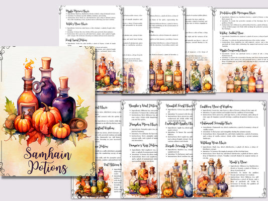 Samhain Magical Potions. Beautiful pages for your Grimoire or Book Of Shadows. Printable