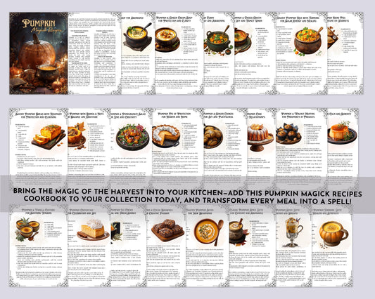 Pumpkin Magick Recipes Cookbook | Witchy Autumn Samhain Kitchen Witch Grimoire | Pumpkin Spice & Harvest Recipes | Printable